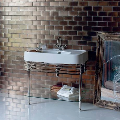 This beautifully designed 900mm basin is mounted on a nickel plated steel stand which has a useful integrated glass shelf to store towels or toiletries, available in a choice of 0, 1, 2 or 3 tap holes, this gives the versatile option of pairing it with many of the stunning Arcade taps on offer. Arcade use a unique PVD nickel-finish coating which offers a long lasting finish and is also environmentally friendly.