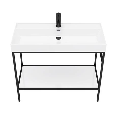 (1) Black Framed 1000 Washstand with Gloss White Open Shelf
