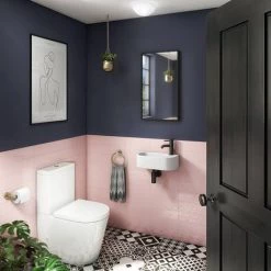 The stylish Arezzo rectangular wall hung basin package, a high quality square matt black ceramic basin with a single tap hole. Provides you with a handy wall mounted space-saving solution for your cloakroom or en-suite. Package includes a stylish round matt black mixer tap, exposed bottle trap with matching basin waste.