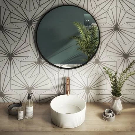 The elegant ribbed exterior of the Arezzo round countertop vessel basin will create a touch of finesse in any bathroom. Made from high quality vitreous china, this chic basin can be fitted to a vanity unit or shelf for a stunning focal point and is best complemented with a high rise basin mixer or wall mounted tap. Some small dimensional variation may occur due to manufacturing tolerances. Waste not included.