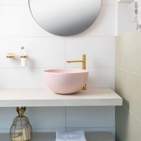 The BagnoDesign Matt Pink Koy Round Countertop Basin creates a modern feel to your bathroom. Measuring 400mm in diameter, the basin is made from high quality ceramic and is designed without an overflow or taphole. The Koy countertop basin will look smart paired with a high rise tap or wall mounted basin mixer.