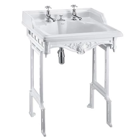 This Classic square basin with invisible overflow is mounted on a beautifully designed White aluminium wash stand, crafted and manufactured by the industry leading traditional brand Burlington.