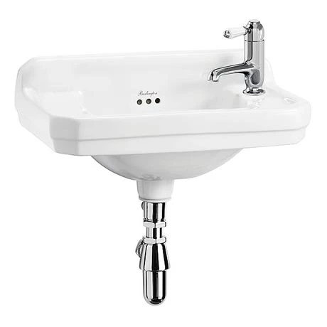 The Edwardian wall mounted right hand 1 tap hole cloakroom basin is beautifully designed, crafted and manufactured by the industry leading traditional brand Burlington.
