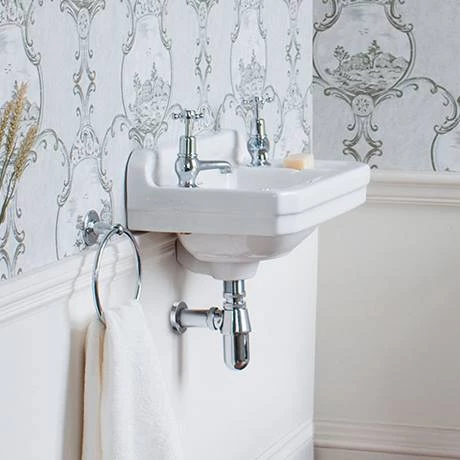 This petite Burlington Edwardian basin will give a sense of grandeur and luxury without cramping a compact bathroom or cloakroom. It captures a traditional style with its broad, ridged rim, subtle backsplash and three hole overflow. The wall mount design frees up room for storage on the floor, and, at just 510mm wide, it easily slots into small spaces. It’s supplied with mounting brackets for quick and sturdy installation.