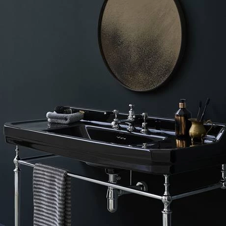The Burlington Jet Edwardian 3TH 120cm Medium Basin and Chrome Wash Stand is both classically timeless and versatile. The lustrous gloss Black basin comes paired with an elegant polished chrome wash stand creating a truly striking look in your bathroom.