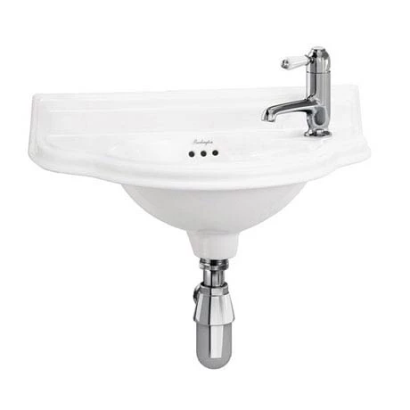 Burlington is pleased to present the period wall hung curved right hand 1 tap hole cloakroom basin. Burlington are committed to maintaining the authenticity of each piece, whilst using the most modern methods of manufacture and materials, available today.