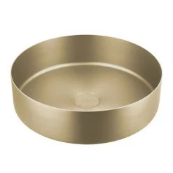 JTP Vos Brushed Brass Round Stainless Steel Counter Top Basin + Waste