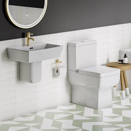 The super stylish Cubo wall hung square 1 tap hole basin with semi pedestal, it’s contemporary elegant lines and compact size make it ideal for smaller bathrooms and en-suites; made from high grade ceramic with a smooth cool white finish. The 520mm wide basin only projects from the wall by 415mm. Comes supplied with a semi pedestal which helps give your bathroom an open look.