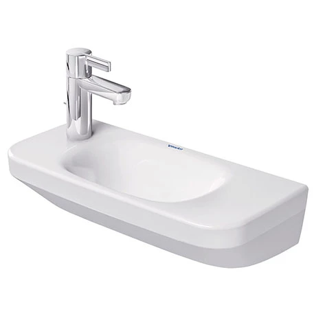 Ideal for cloakrooms and en-suites, the DuraStyle 500mm 1TH Wall Hung Handrinse Basin blends harmoniously into any bathroom setting. Made from high quality ceramic and finished in White Alpin, this basin has no overflow and the choice of a left or right hand punched tap hole.