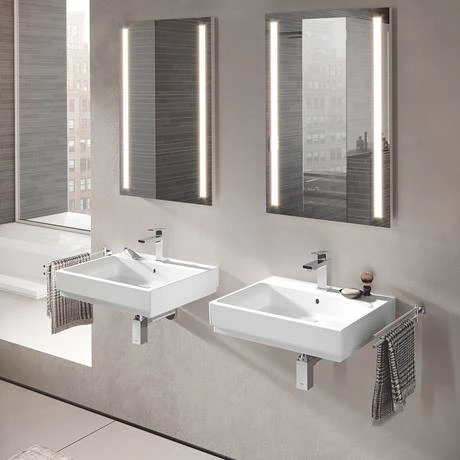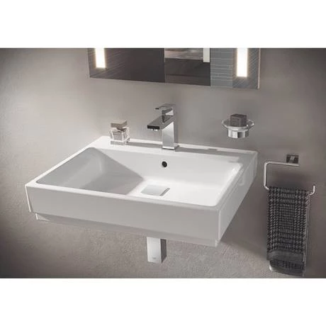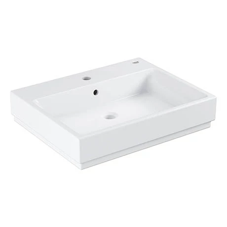 The Cube Ceramic range of basin designs has been created to suit your personal style and routine. This 600mm wall hung basin is ideal for creating a modern bathroom scheme. It features a single tap hole and built in overflow. Thanks to GROHE PureGuard coating, the ceramic surface locks out dirt and inhibits bacteria. Manufactured from high grade fine fire clay and finished in Alpine White, it’s durable surface will look good for years to come.