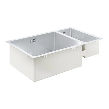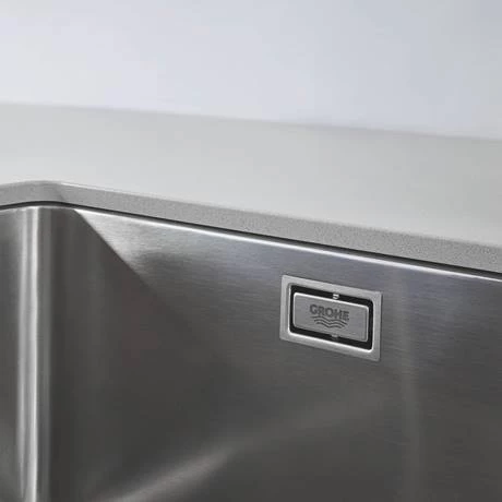 The Grohe K700 1.5 bowl undermount stainless steel combines contemporary sleek style with practicality. Designed to be undermounted beneath a worktop, the sink has a deep main bowl that is designed to to be mounted on the left. Made from durable GROHE StarLight AISI 304 grade stainless steel for durability while GROHE Whisper insulation on the underside reduces noise and vibration. Includes minimalist square-shaped overflows and basket strainer wastes.