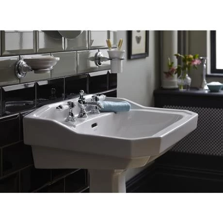 The beautiful structured lines and stunning detailing of the Granley brings a touch of elegance to any bathroom. Manufactured to the highest standards from vitreous china, this Standard Basin and Tall Pedestal comes with the option of 1, 2 or 3 tap holes. The taller than standard pedestal makes it ideal for taller or older people as it reduces the need to arch your back. Heritage offer a lifetime guarantee on all their sanitaryware.