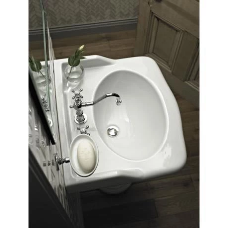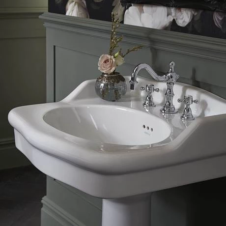 A great choice for modern and period bathrooms, the New Victoria range will make a real statement. This stunning Standard Basin and Pedestal is crafted from high grade white vitreous china and comes with 3 tap holes. Combine with Heritages range of elegant traditional taps to complete the look. Heritage offer a lifetime guarantee on all of their sanitaryware.