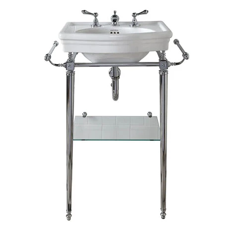 Imperial Etoile ceramic ware is a collection with exceptional presence and strength of character. This 530mm Small Basin and Chrome Basin Stand features a Victorian inspired design with rounded corners to provide a smooth and subtle variation on a classic look. The luxury chrome basin stand features a glass shelf and a towel rail either side offering practical storage. All Imperial ceramic ware is made in Britain from clay sourced in Cheshire.