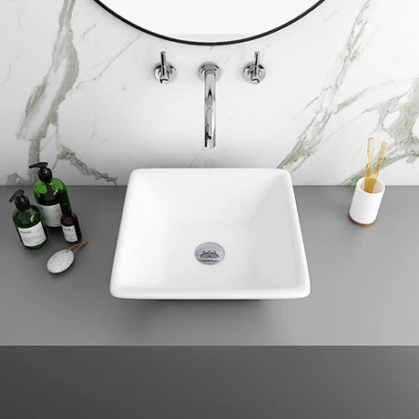 The Lazio square counter top basin features a stylish square base with sloping edges. Designed to be mounted onto a worktop console or piece of vanity furniture. The basin comes with no tap holes and is to be used alongside a counter or wall mounted outlet. Some small dimensional variation may occur due to manufacturing tolerances.