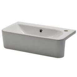 The super stylish Milan 550mm semi-recessed basin with 1 tap hole, designed to be mounted into a worktop or piece of vanity furniture. Manufactured from quality white gloss ceramic.