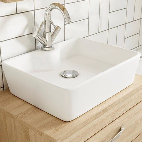 Designed to be mounted on a worktop console or vanity unit, the Nuie Tide Square Ceramic Counter Top Basin is a sophisticated option for contemporary bathrooms. At a modest 485mm wide, this modern sink is a fine choice to make the most of smaller spaces. This Nuie basin is suitable for use with mono sink mixer taps and features an eye catching rectangular shape, subtly tapered edges and a single tap hole. It’s made from long lasting glazed ceramic, with a classic white gloss finish that will look the part in any modern bathroom.