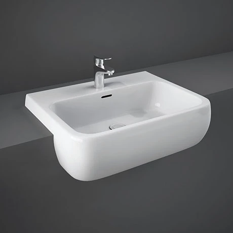 The Metropolitan semi-recessed 1 tap hole basin from RAK ceramics. Designed to used to be used with vanity units or bathroom furniture. The basin has a overflow and tap platform and is made from quality vitreous china, the clean curvacious design of Metropolitan will compliment any cloakroom or bathroom.