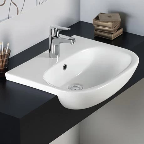 The Tonique semi-recessed 1 tap hole basin from RAK ceramics, designed to used To be used with vanity units or bathroom furniture. Basin has a overflow and tap platform and is made from quality vitreous china, the clean curvacious design of Tonique will compliment any cloakroom or bathroom.