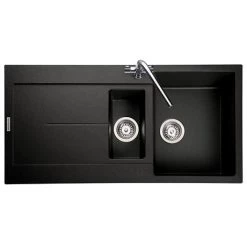Rangemaster’s Andesite sinks offer a contemporary look with it’s sleek drainer and large geometric bowls. Made from Igneous, a rock solid composite material incorporating 80% quartz and high-grade acrylic giving scratch, UV resistant and natural antibacterial properties. All Igneous sinks come with a 25 year guarantee.