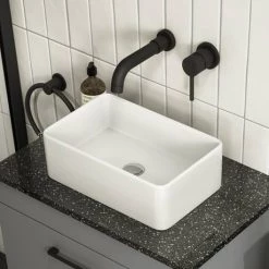 Looking for a countertop sink? The Rectangular Ceramic Basin is designed so it’s easy to install – just pop it directly onto your chosen shelf and connect it up to your waste. A compact 460mm wide, the countertop basin suitable for smaller bathrooms, and the geometric design has gently rounded edges for a modern look. The high quality ceramic gloss white basin is durable and simple to keep sparkling clean. For a shelf that would work well with this basin, consider the Nova Wall Hung Slimline Basin Shelf.