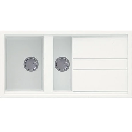 With a minimal bowl radius and larger bowls, Reginox Best granite kitchen sinks are stylish and practical. Made from a combination of granite and synthetic resin, the material is very hygienic, easy to clean and maintain, meaning that they will look better for much longer than some other materials. This 1.5 bowl sink in white features integrated drain covers and a rectangular overflow.