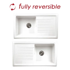 The Reginox Contemporary White Ceramic Belfast Kitchen Sink is a stylish kitchen sink combining contemporary design and traditional craftsmanship. With its simple minimalist design this Belfast sink would be suitable for any modern or traditional kitchen. Create a focal point in your kitchen with this elegant belfast kitchen sink. Made from high grade fine fire clay it makes it robust and durable making it able to withstand the daily uses of the kitchen. This beautiful sink comes with a 10 year manufacturer’s warranty.