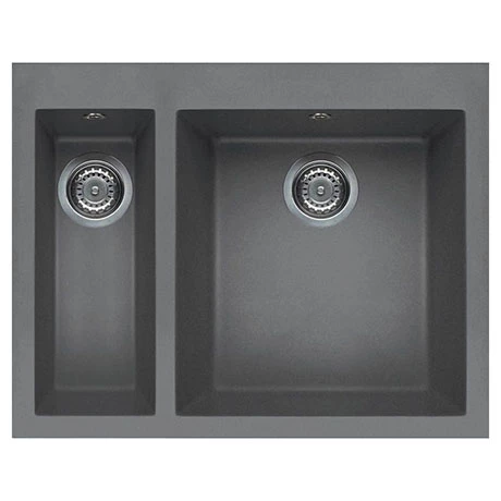The Reginox Quadra sink collection succeeds to highlight its modern and clean shapes due to its simple and minimalist design. Made from a combination of granite and synthetic resin, the material is very hygienic, easy to clean and maintain, meaning that they will look better for much longer than some other materials. This 1.5 bowl sink in titanium is for inset mounting only and comes supplied with chrome basket strainer wastes.