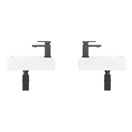 *Package includes left and right hand tap hole basins with square matt black taps, wastes and bottle traps.