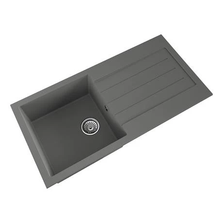 The Venice composite kitchen sink range are constructed from pressed material that is stain, scratch and impact resistant as well as being antibacterial. The sinks can withstand high heat temperatures and are easy to maintain and clean. This 1.0 bowl sink comes in a smooth matt grey finish and is fully reversible so the drainer can be on the left or right. Comes supplied with a chrome basket strainer waste.