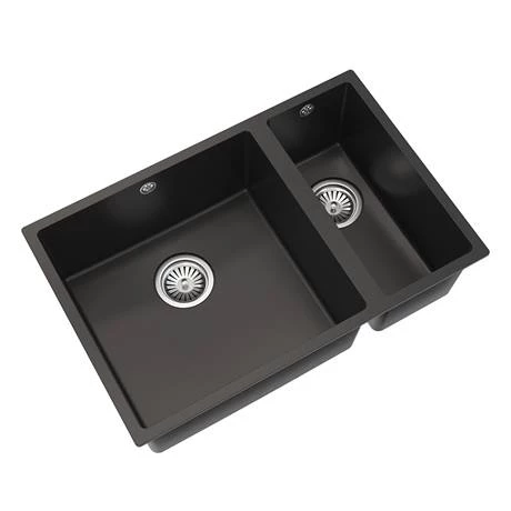 The Venice composite kitchen sink range are constructed from pressed material that is stain, scratch and impact resistant as well as being antibacterial. The sinks can withstand high heat temperatures and are easy to maintain and clean. This 1.5 bowl sink comes in a smooth matt black finish and is fully reversible so the drainer can be on the left or right.