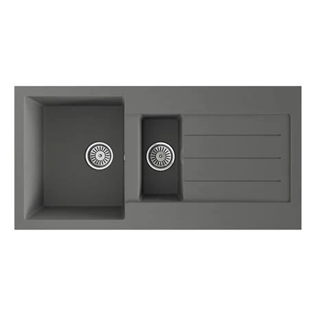 The Venice composite kitchen sink range are constructed from pressed material that is stain, scratch and impact resistant as well as being antibacterial. The sinks can withstand high heat temperatures and are easy to maintain and clean. This 1.5 bowl sink comes in a smooth matt grey finish and is fully reversible so the drainer can be on the left or right. Comes supplied with chrome basket strainer wastes.