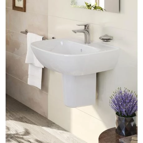 This washbasin features 1 tap hole and is available in 4 different size options, a full pedestal option is listed separately.