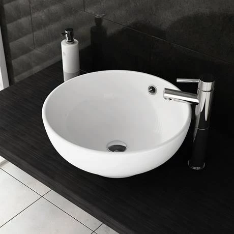 The elegant round counter top basin with stylish round design. Designed to be mounted onto a worktop console or piece of vanity furniture. The basin comes with no tap holes and is to be used alongside a counter or wall mounted outlet. Made from quality smooth white gloss ceramic. Some small dimensional variation may occur due to manufacturing tolerances.